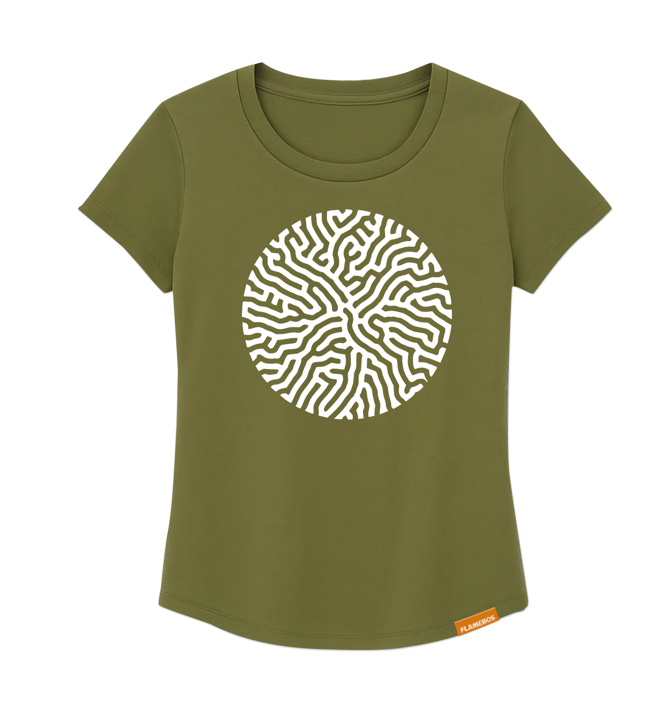 An eye catching design that was inspired by the complexity of natural patterns. It's printed on a premium ladies t-shirt with a tapered waist offering a more contoured look.