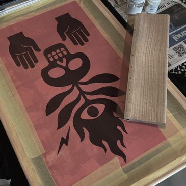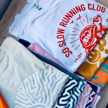 Our team consists of an illustrator and artists, and we design, paint, and print all our artwork in-house. As everything is going digital, we've gone old school and invested in a silk screen printing press to print all our tees the traditional way. It's not easy, and there will be some slight "mishaps" (which add character), but in the end, the results are worth it.